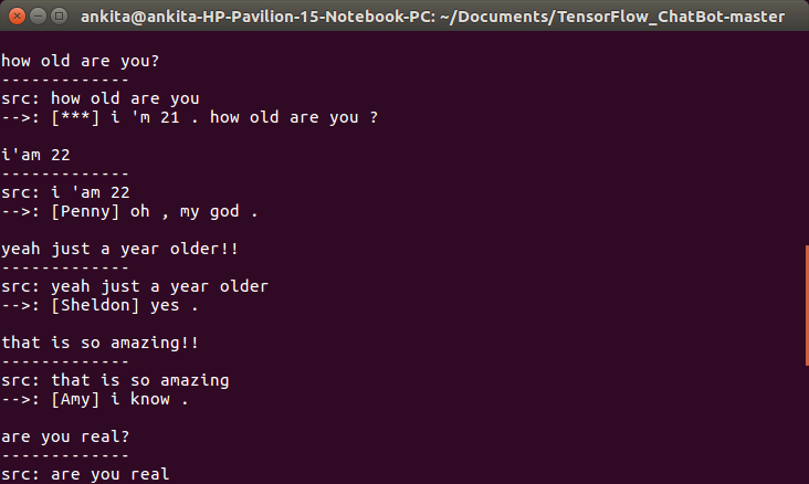 A ChatBot (short form of Chat Robot) a computer program that simulates human conversation, or chat, through artificial intelligence. Typically, a chatbot will communicate with a real person, but applications are being developed in which two chatbots can communicate with each other. Chatbots are used in applications such as ecommerce customer service, call centers and Internet gaming. Retrieval-based bots use a repository of predefined responses and some kind of heuristic to pick an appropriate response based on the input and context.Generative models don’t rely on pre-defined responses. They generate new responses from scratch.In this project, we have been implemented a chatbot trained on the dataset of subtitles of Big Bang Theory.